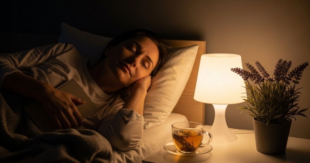 Your bedroom should feel like a sanctuary. Keep it dark, quiet, and cool. Soft lighting, cozy bedding, and minimal clutter can make a big difference in helping your body recognize it’s time to unwind.