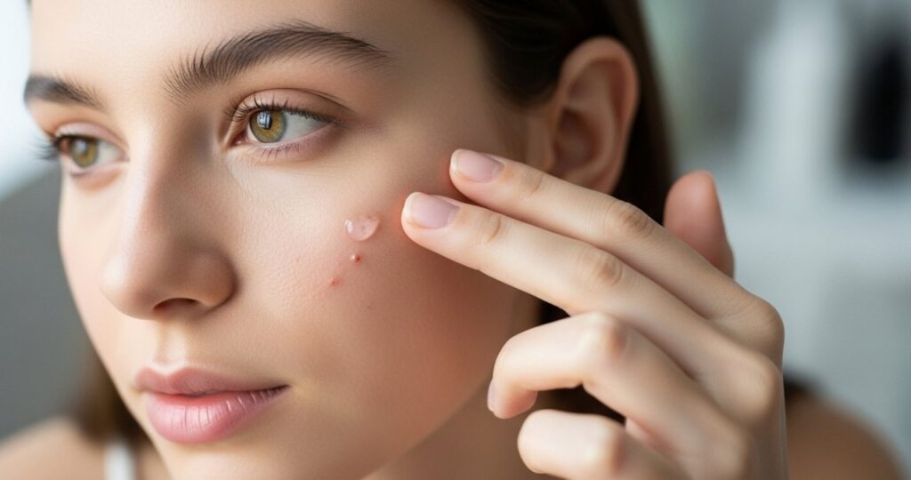 The most important rule is simple: don’t touch it. As tempting as it may be, picking only spreads bacteria, increases inflammation, and can leave behind dark marks that take weeks to fade.
